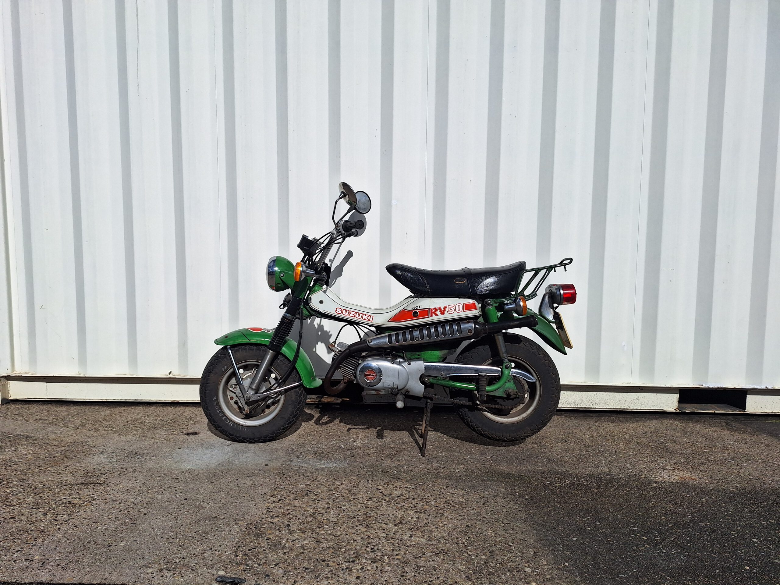 Suzuki RV 50 mit Fußschaltung.